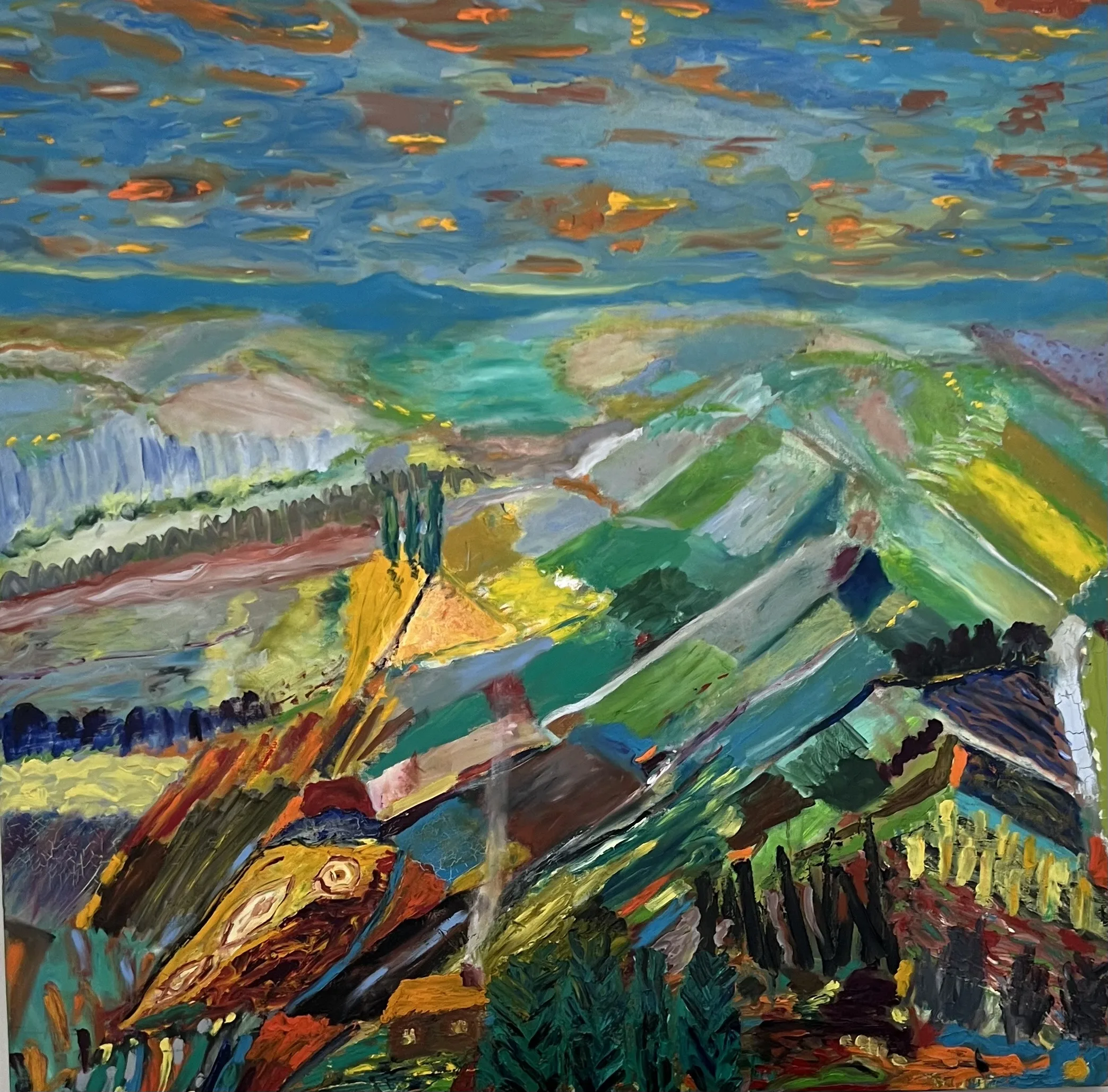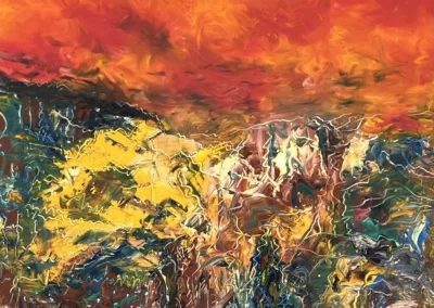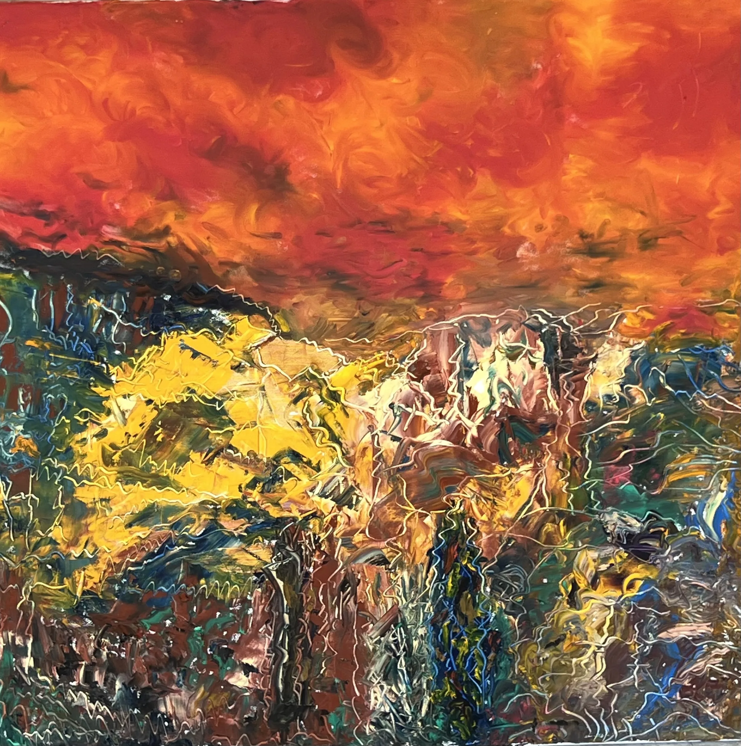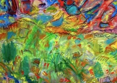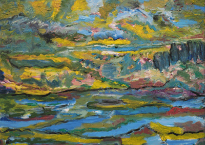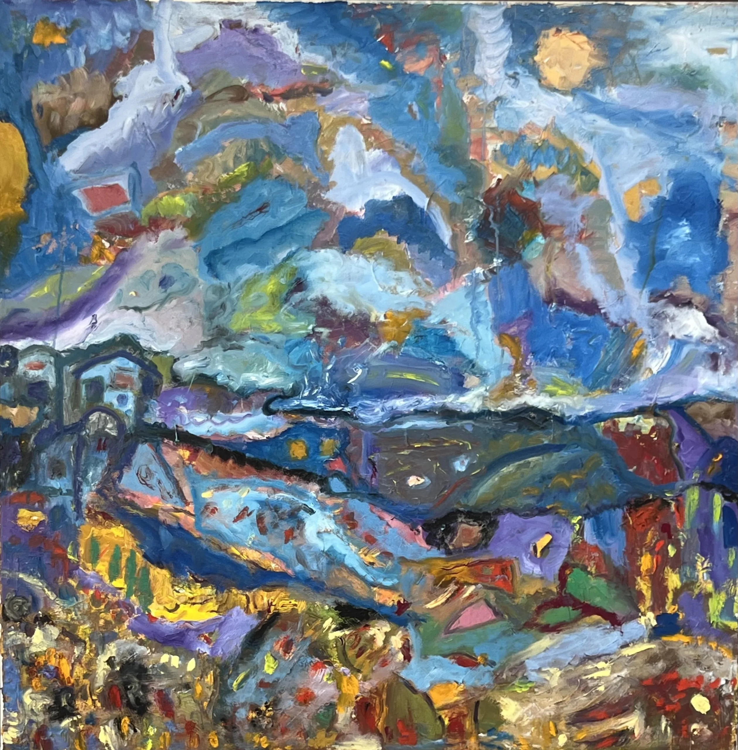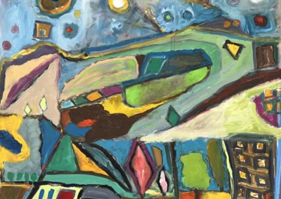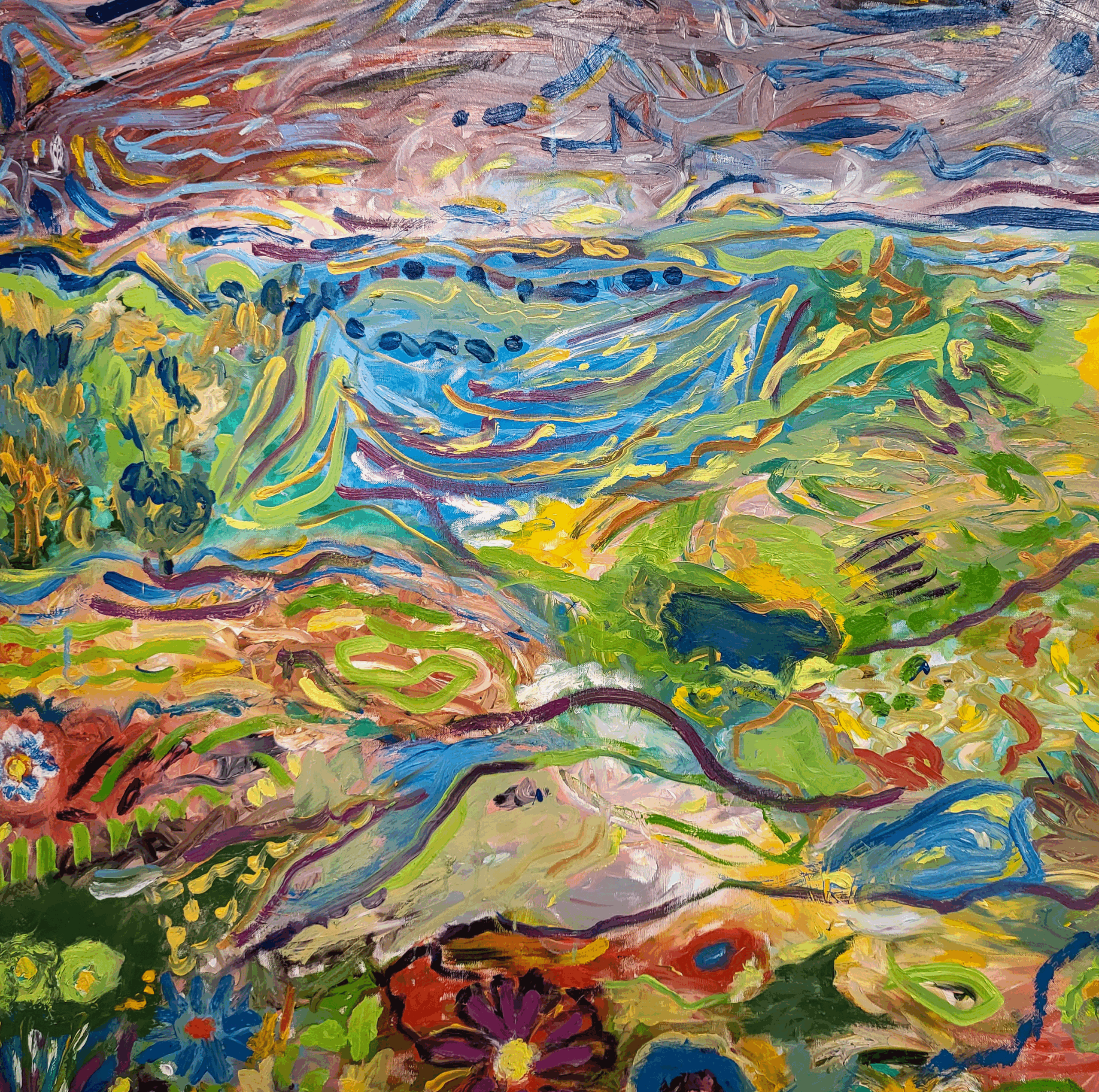 Painting the landscape of the Israel, Ashman weaves vivid colors of spring dancing with lines and strokes. Working with traditional oils on canvas, the landscape transforms into inner movement, portraying his moods and hopes. Ashman strives to feel complete with nature as nature brings the potential of life-giving food, medicine, peace, and joy.