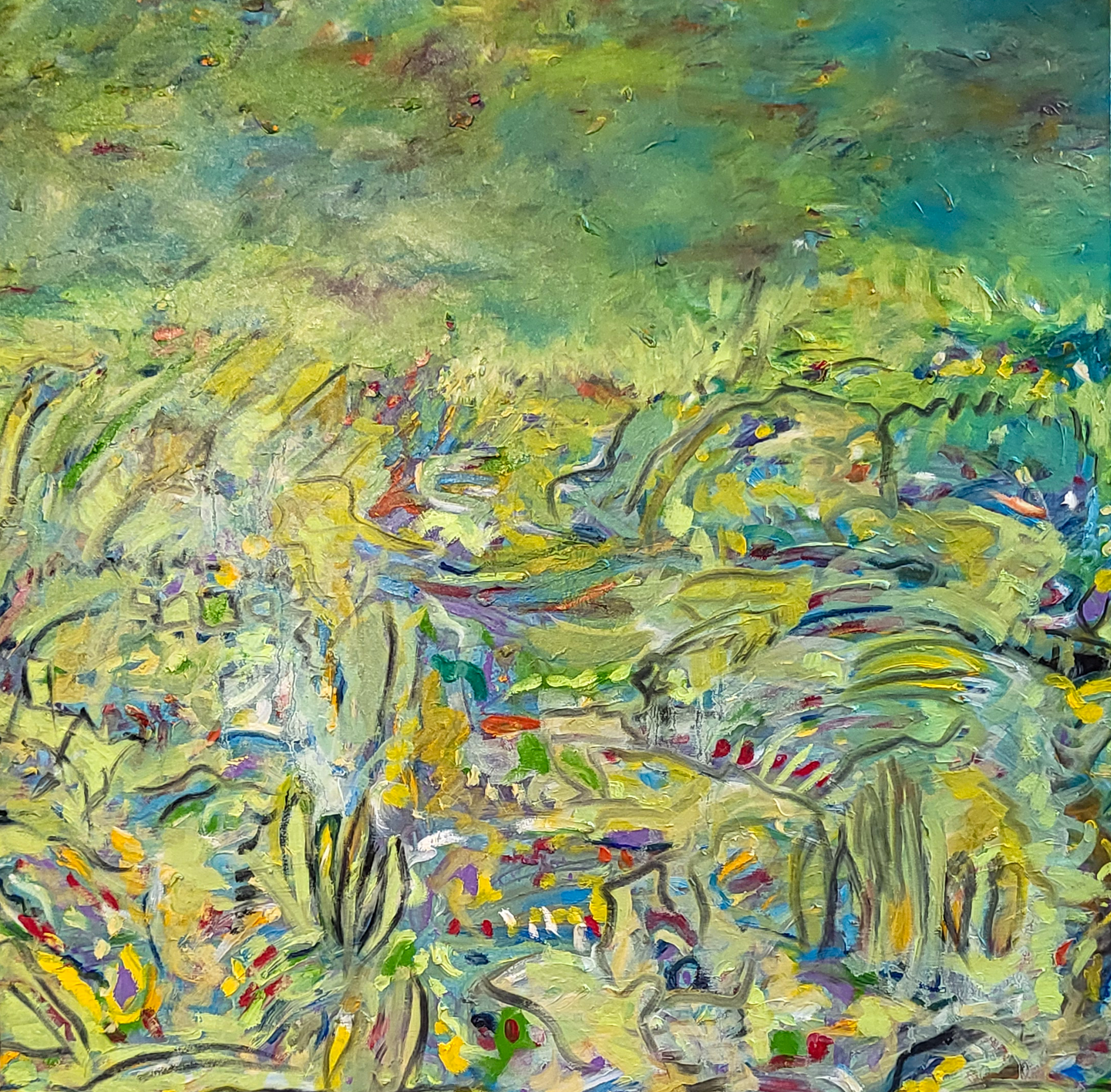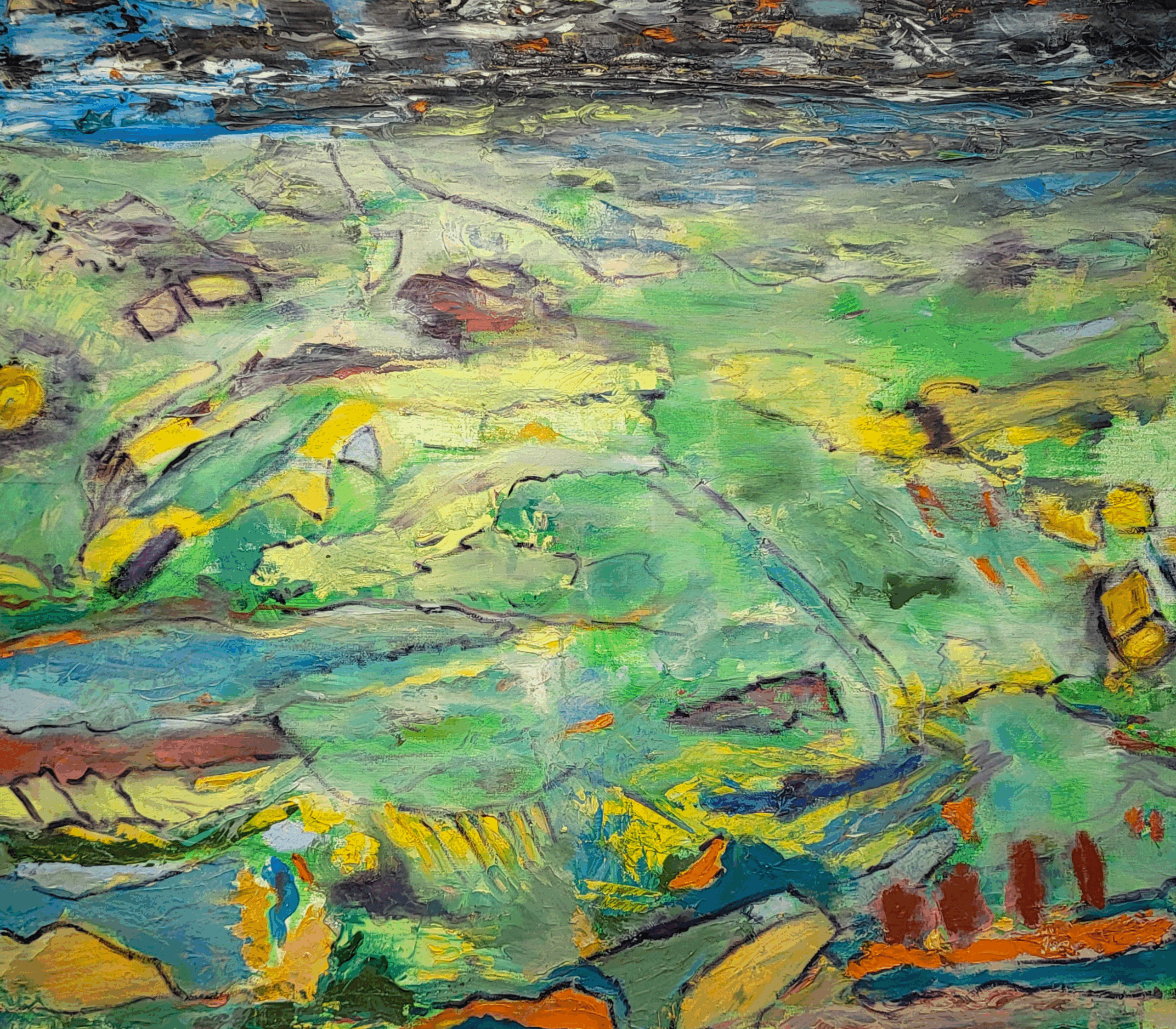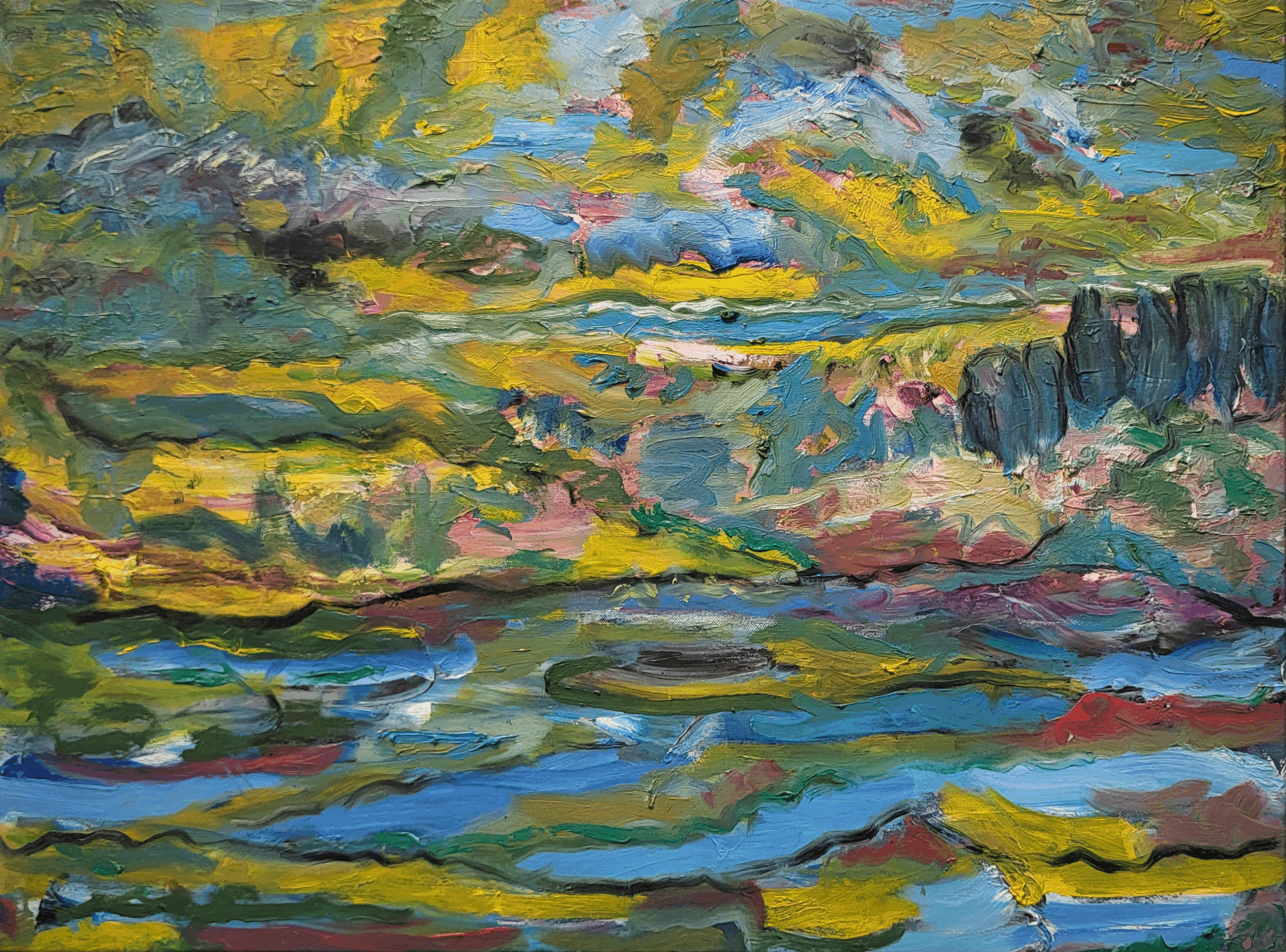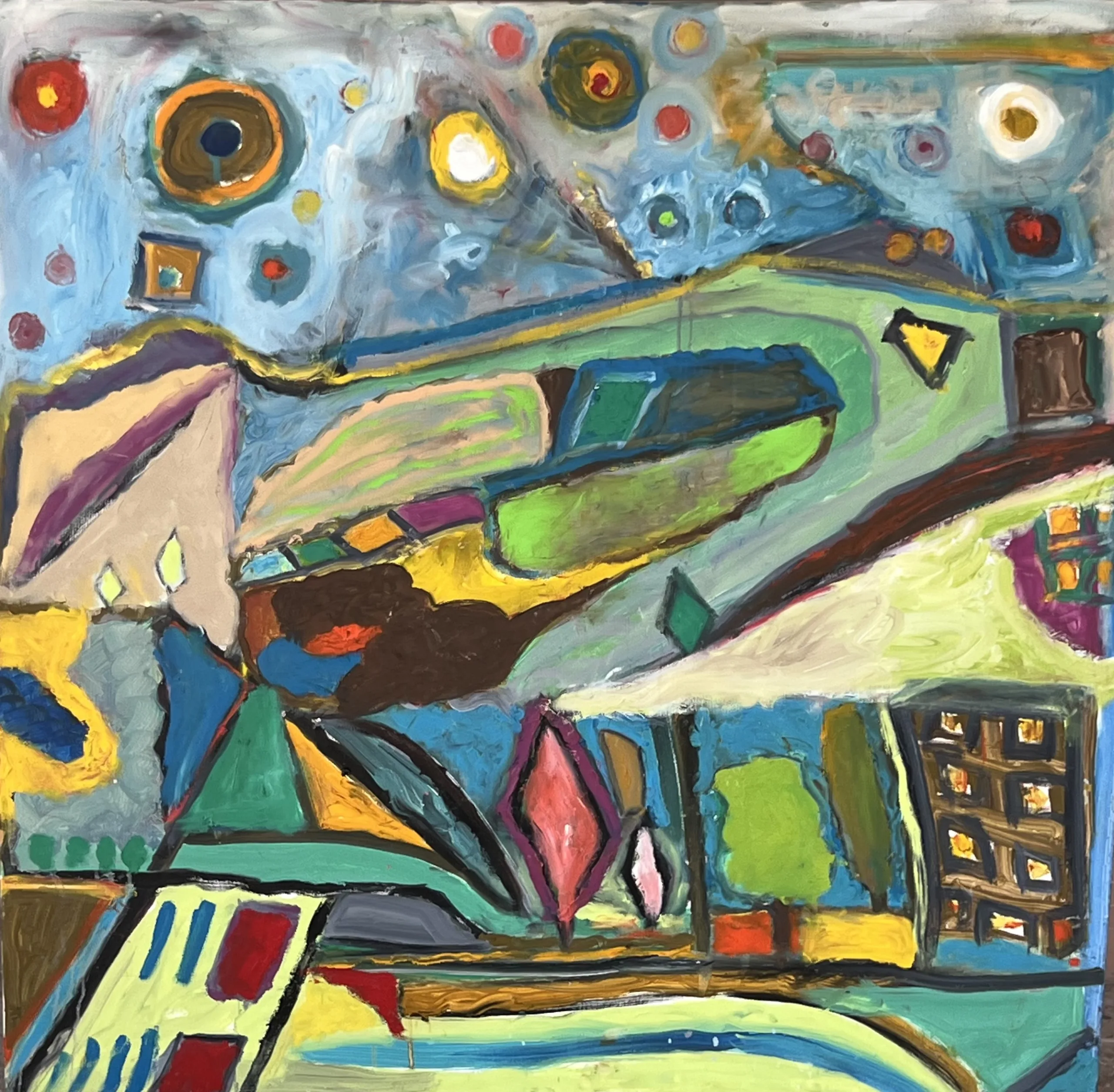 Painting the landscape of the Israel, Ashman weaves vivid colors of spring dancing with lines and strokes. Working with traditional oils on canvas, the landscape transforms into inner movement, portraying his moods and hopes. Ashman strives to feel complete with nature as nature brings the potential of life-giving food, medicine, peace, and joy.